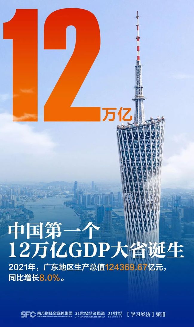 12.4万亿元,同比增长8%,广东不仅成为国内唯一一个GDP超12万亿元的省份,连续33年居全国第一。