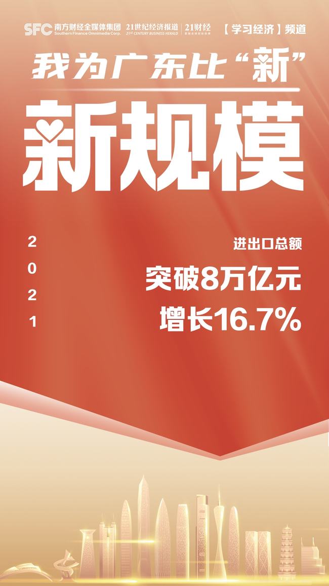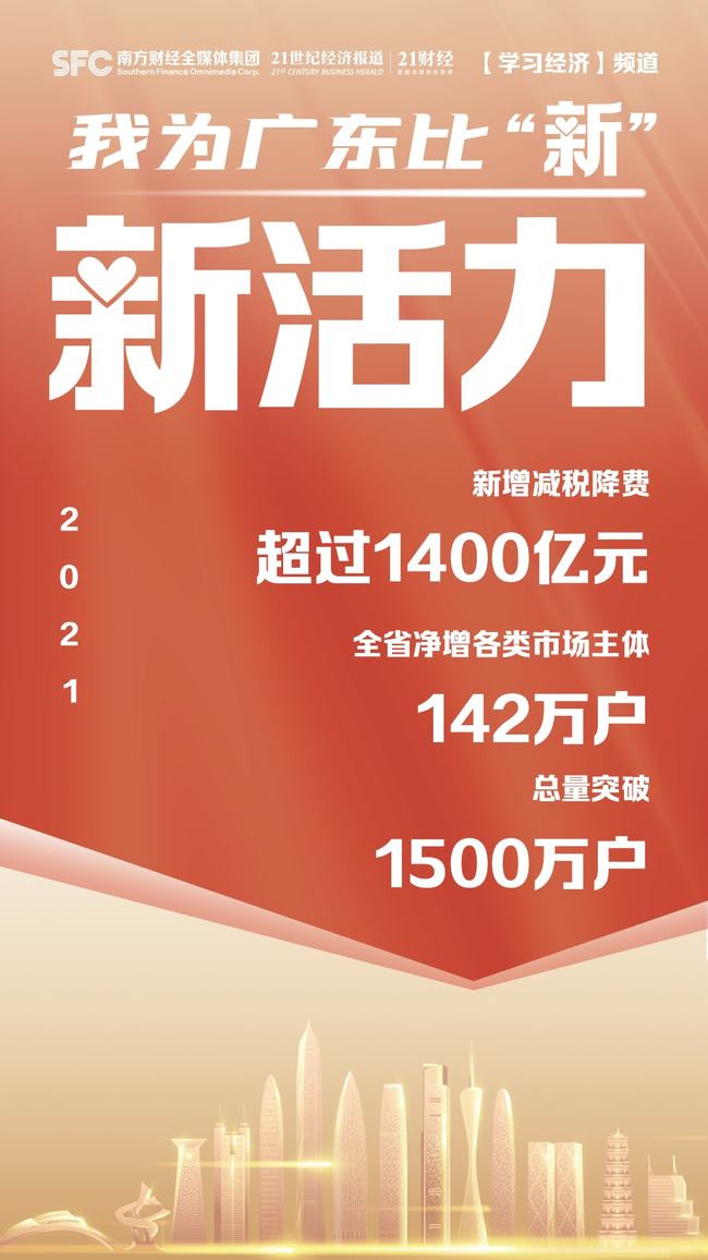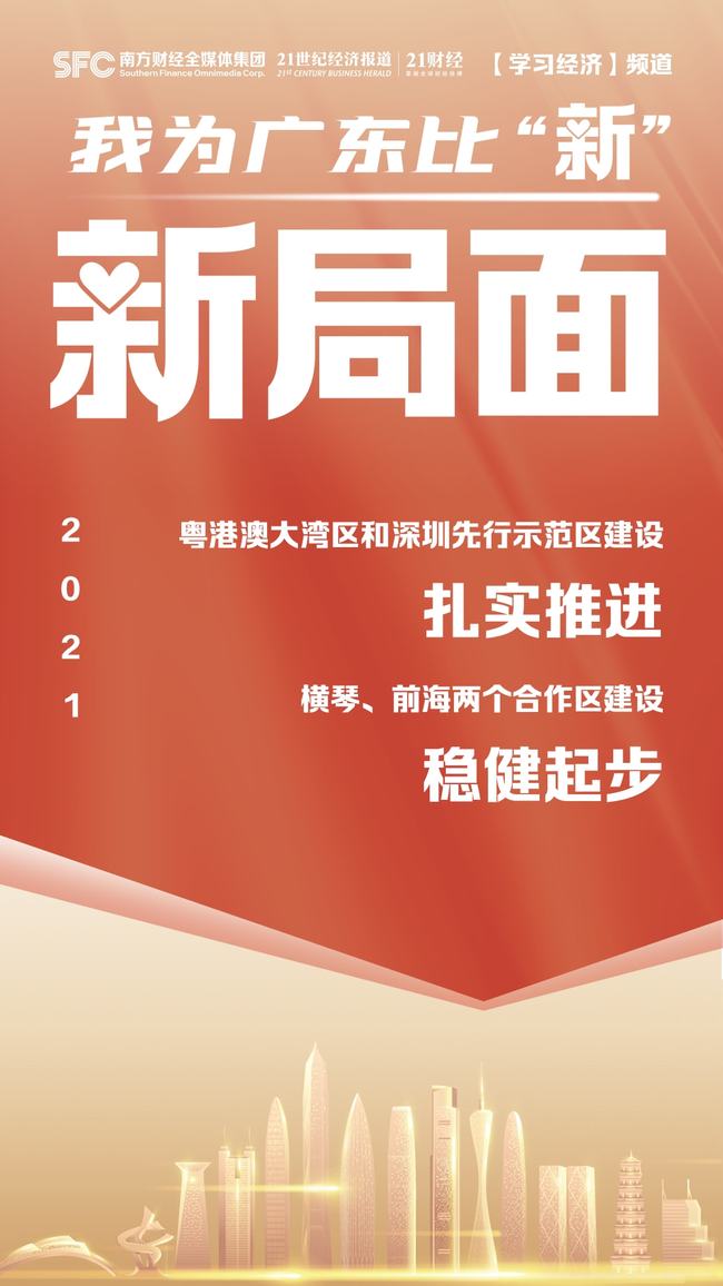 2021年工作回顾去年,全省地区生产总值达12.4万亿元、同比增长8%,东莞成为广东省第四个经济总量过万亿元城市,全省地方一般公共预算收入达1.4万亿元、增长9.1%,进出口总额突破8万亿元、增长16.7%,金融业增加值突破1万亿元,顺利完成省十三届人大四次会议确定的年度主要目标任务,实现“十四五”良好开局。在最短时间内打赢同新冠病毒德尔塔变异株的首次正面交锋,及时高效处置广州、深圳、东莞、佛山等多起本土疫情,守住了没有扩散到省外特别是首都北京的底线。扎实推进粤港澳大湾区和深圳先行示范区建设,全力推动横琴、前海两个合作区建设稳健起步。新建5G基站4.67万座,累计达17万座、居全国第一。加快内联外通基础设施建设,历史性实现“市市通高铁”,建成赣深高铁、南沙港铁路、广连高速一期、深圳机场卫星厅、湛江港30万吨级航道改扩建等项目,琼州海峡港航一体化取得新进展。认真落实国家减税降费政策,制定我省减轻企业负担十项措施,做好保障中小企业款项支付工作,新增减税降费超过1400亿元。大湾区国际科技创新中心、综合性国家科学中心建设扎实推进,鹏城实验室、广州实验室两大国之重器顺利运作,省实验室产业支撑和聚力引才效果显著,散裂中子源二期等5项重大科技基础设施纳入国家"十四五"规划,获批建设大湾区国家技术创新中心、国家新型显示技术创新中心、国家第三代半导体技术创新中心、国家5G中高频器件创新中心,省重点领域研发计划和基础研究重大项目取得突破性进展。空气质量优良天数比率(AQI)达94.3%,PM2.5平均浓度为22微克/立方米。