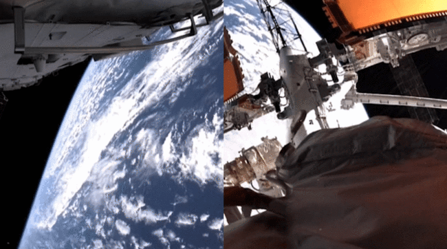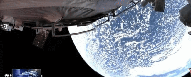 舱外的全景相机多点位从不同角度拍下蔚蓝地球缓缓转动,画面绝美。