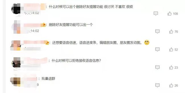 网友期待删除好友提醒功能、语音倍速、批量退群等功能。(图片来源:新浪微博截图)