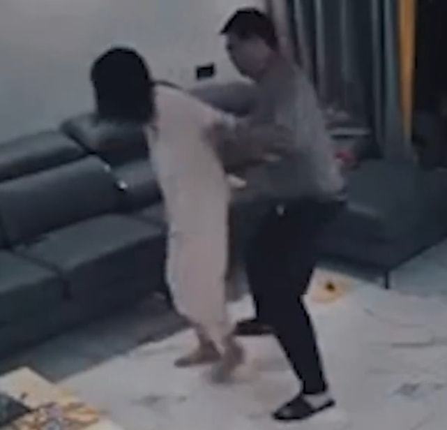 在视频中,他们的孩子哭着让男子住手,但男子置若罔闻,还在继续家暴,其妻子大声呼喊:“宝宝快走开……”