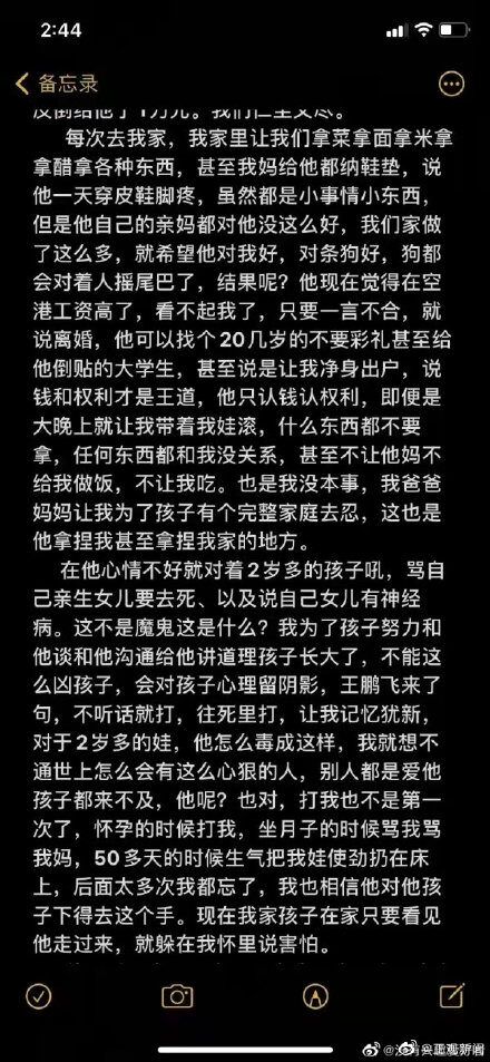 文中无奈提及家暴并非首次:“打我也不是第一次了,怀孕的时候打我,坐月子的时候骂我骂我妈,50多天的时候生气把我娃使劲扔在床上,后面太多次我都忘了。”