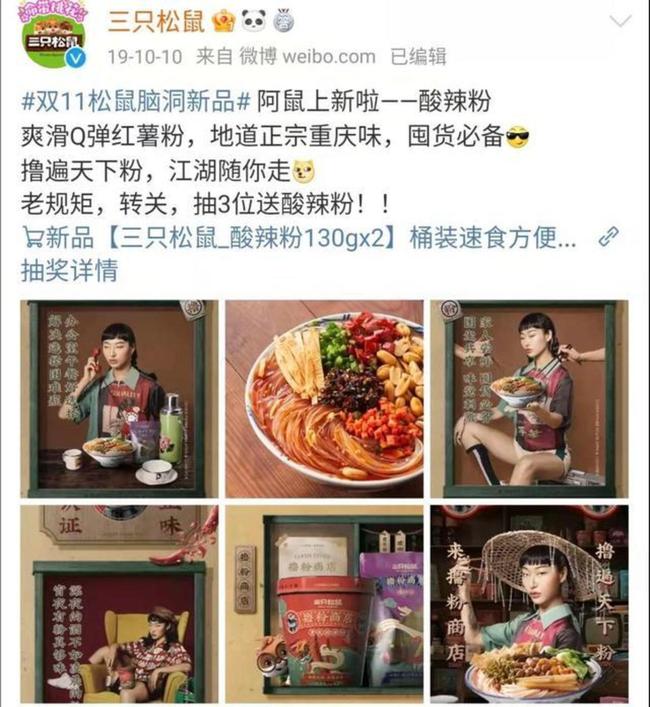 目前,经查阅三只松鼠店铺发现,酸辣粉产品已无相关模特图片。