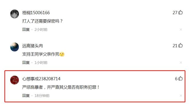 凡事不可得理不饶人,人要讲情面要良心。网友评论:严惩施暴者,并严查其父是否有职务犯罪!