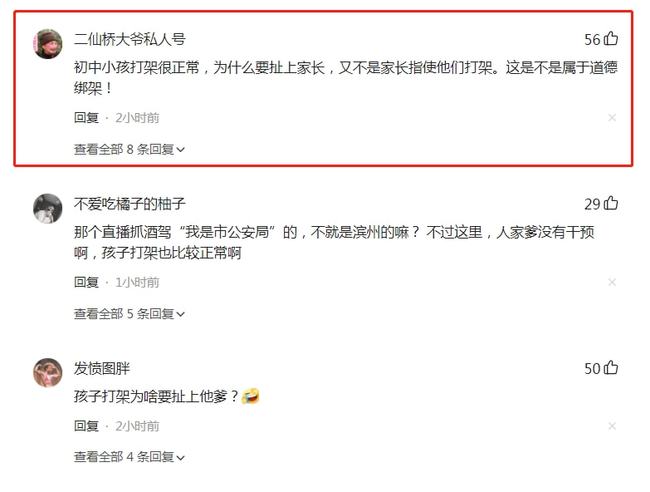 网友评论:初中小孩打架很正常,为什么要扯上家长,又不是家长指使他们打架。这是不是属于道德绑架!