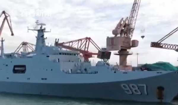 参与执行此次任务的,有海军两栖船坞登陆舰五指山舰,和综合补给舰查干湖舰。