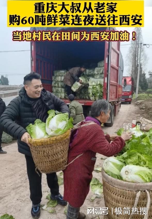 2021年新年伊始,不断有一些温暖大家的新闻出现。在1月2日上午,一条【#男子购60吨新鲜蔬菜连夜送西安#】上了热搜: