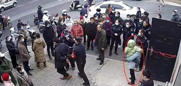 1月7日下午四十三十分左右,他和同事张金和一块到涧西区法院调阅案件卷宗。刚下车就看到法院门口东侧的人行道上,聚集了不少围观群众,走进后发现有一名男子情绪激动,正在撕拽一女子极其怀中抱着的孩子,嘴里还吆喝着,“想si哩…….”。