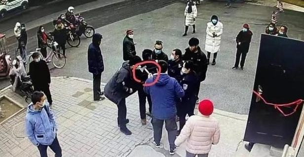男子身藏斧头与妻子法院门口争执