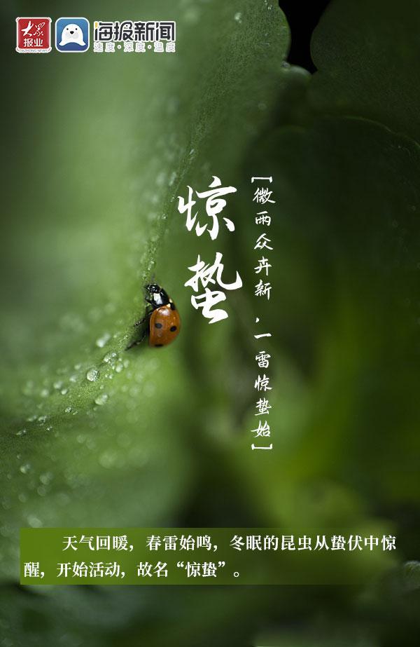 惊蛰,为一年二十四个节气中的第三个节气,也是春季的第三个节气,每年太阳运行至黄经345度时即为惊蛰。