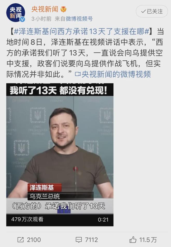 泽连斯基在视频讲话中问西方承诺: