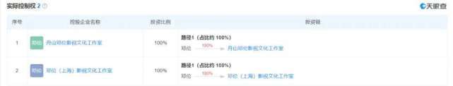 据天眼查资料显示,目前邓伦旗下实控2家公司,其本人全部全资持股并担任法人代表。其中,邓伦(上海)影视文化工作室成立于2016年6月,注册资本10万元人民币,为个人独资企业。舟山邓伦影视文化工作室,成立于2018年3月,注册资本100万元。