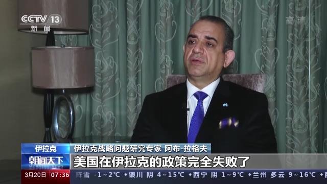 伊拉克战略问题研究专家 阿布·拉格夫:坦率地说美国在伊拉克的政策完全失败了,他们给伊拉克带来了腐败的政治制度,这是完全失败的。如同美国在阿富汗、越南和其他地方的失败一样,他们在伊拉克也失败了。
