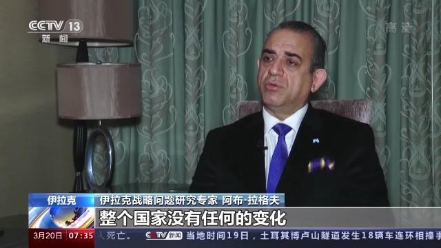 伊拉克战略问题研究专家 阿布·拉格夫:我不认为(战后的)伊拉克取得了任何的发展,整个国家没有任何的变化,我们没有看到现代化的桥梁,伊拉克的医疗、工业、银行业依然落后于整个世界很多。