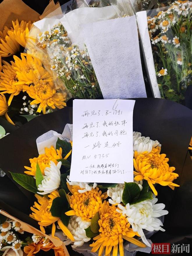 29日,一名特殊的“家属”也冒雨来到藤县祭奠“家人”。他叫艾非(化名),是一位民航飞行员。他将花束郑重地摆在花海之中,轻声说道“一路走好”。