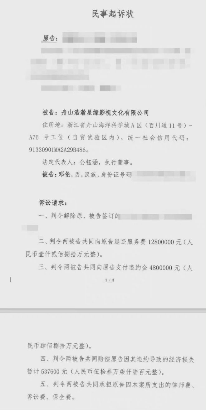 鞭牛士 3月29日消息,据网易娱乐报道,男星邓伦因为偷逃税被罚1.06亿,迎来了新进展。今日,有品牌方的起诉状曝光要求邓伦和公司归还1280万的代言费,此外还要另支付480万违约金,同时对方还要求两被告赔偿经济损失53万,加起来近两千万的赔偿。