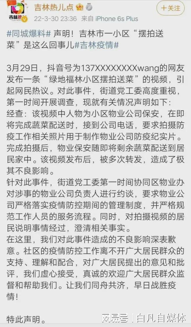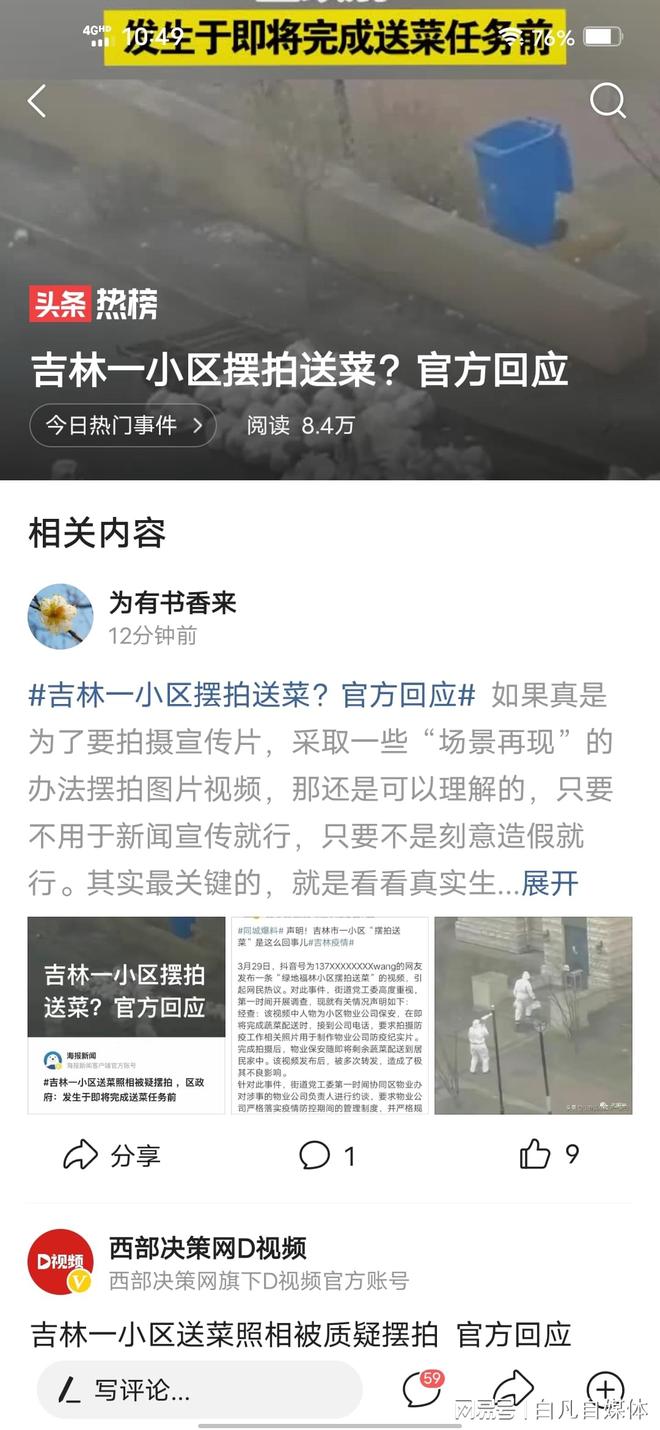 吉林一小区摆拍送菜?官方回应#如果你为了拍宣传片,真的采取一些“场景再现”的方法摆图片和视频,还是可以理解的,只要不是为了新闻宣传,只要不是故意造假。