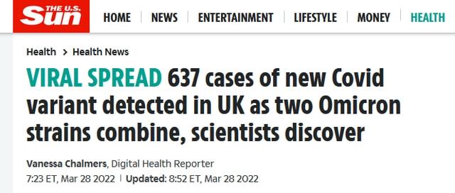 据《太阳报》报道,英国发现了637例奥密克戎新变种XE病例。英国科学家说,这种变异病例是奥密克戎BA.1和BA.2亚毒株的结合体,传播速度比BA.2变异毒株快10%左右。