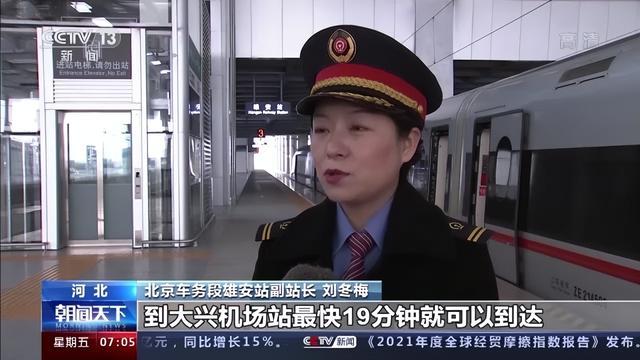 北京车务段雄安站副站长刘冬梅告诉总台记者:“现在从雄安站到北京西站(最快)只需要50分钟,到大兴机场站最快19分钟就可以到达,截至目前车站是往返运送旅客84万人次。”
