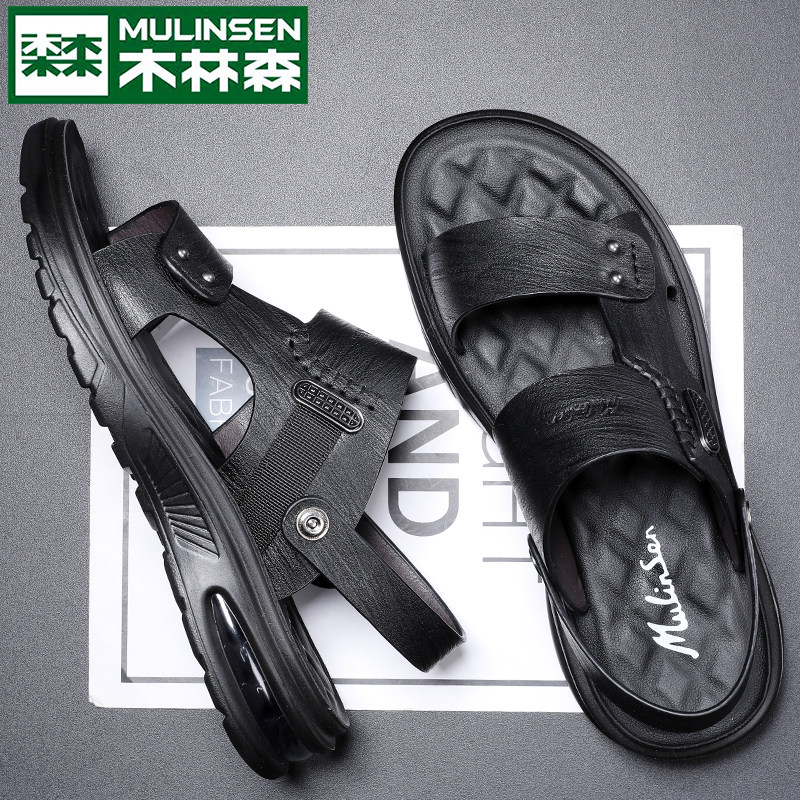 木林森凉鞋男夏季2022新款潮流真皮男士休闲沙滩鞋防滑凉拖鞋外穿券后65.9元包邮