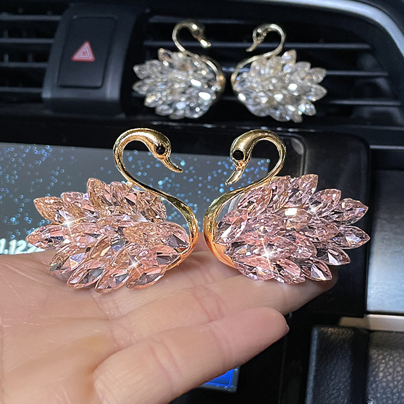车载香薰空调出风口装饰水钻珍珠天鹅车内装饰品女士汽车香水摆件券后5.9元包邮