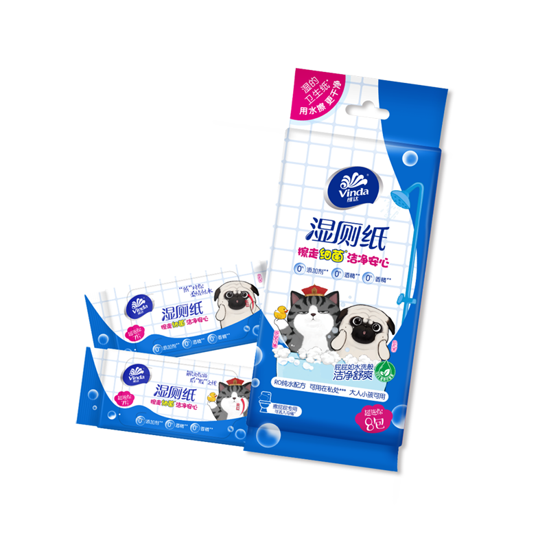 Vinda超迷你湿厕纸,7片/包*8包,共56片。维达湿厕纸便携超迷你湿厕巾,洁阴私处厕所可冲如厕擦屁股洁厕湿巾。