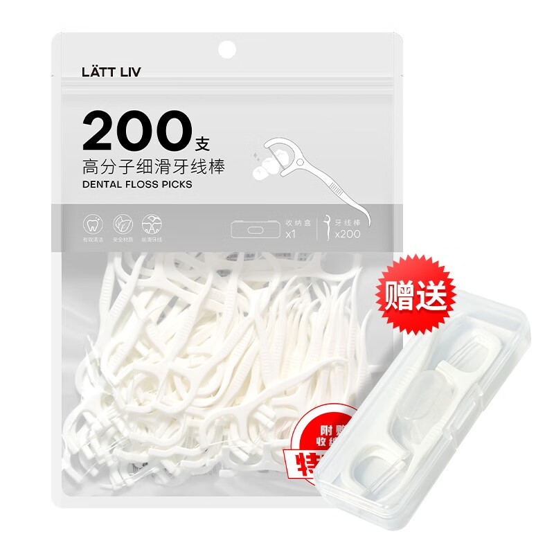 生活无忧LATTLIV 牙线棒专业洁齿牙线扁线不伤牙龈多效护理装 200只装【划算装】券后6.9元包邮