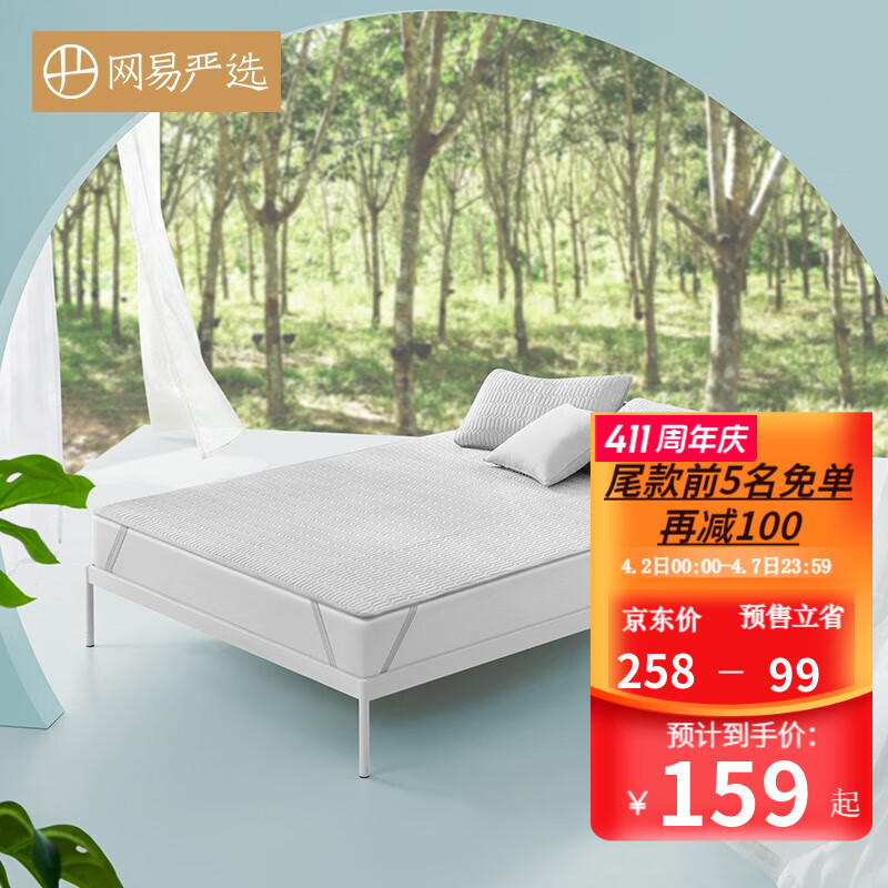 【新品】网易严选 冰能科技 泰国乳胶凉席软席 凉感防抑菌 可机洗水洗单人双人三件套宿舍 夏季垫子床垫 天空灰 1.8m(凉席*1+2个枕套)券后329元包邮